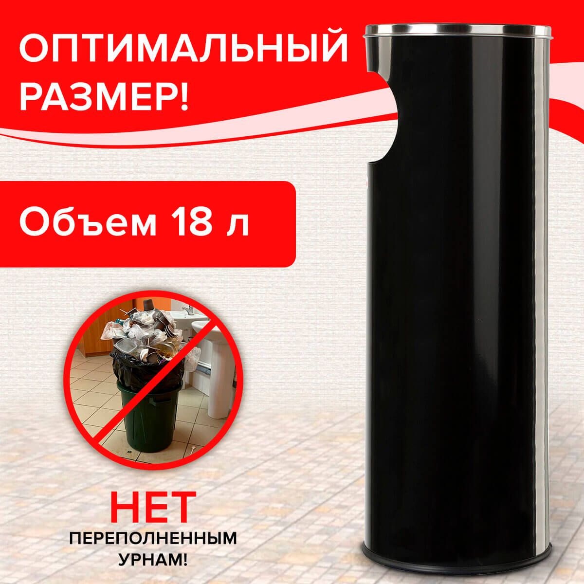 Урна с пепельницей 18 литров, нержавеющая сталь, черная, LAIMA PROFESSIONAL в зеленограде